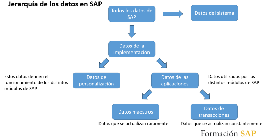 En general, los datos en SAP pueden dividirse en dos grandes categorías: los datos propios del sistema, es decir, los que pertenecen al software y permiten su funcionamiento, y los datos relacionados con las aplicaciones, que dependen directamente de la empresa que utiliza el sistema.