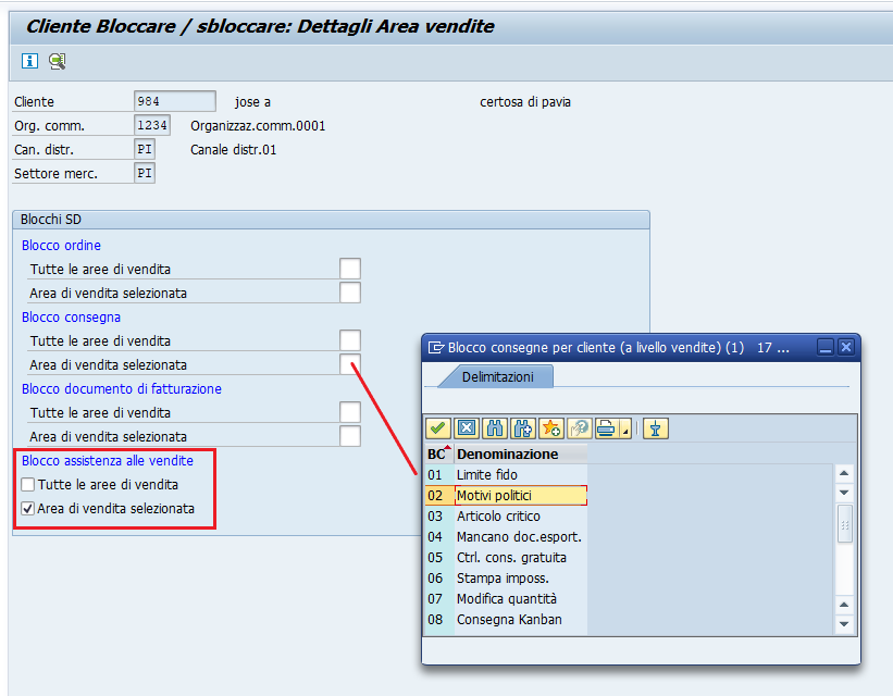 Conviene saber además que es posible bloquear las transacciones solo para determinadas áreas de venta, sin afectar necesariamente a toda la relación comercial con el cliente.